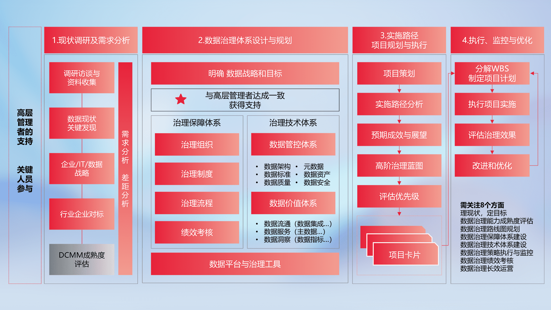 制定并执行统一的数据标准,,,,规范数据定义和格式,,,消除冗余和不一致性,,,,实现跨部门和跨系统的数据一致性,,,,为企业提供标准化的数据基础。。。